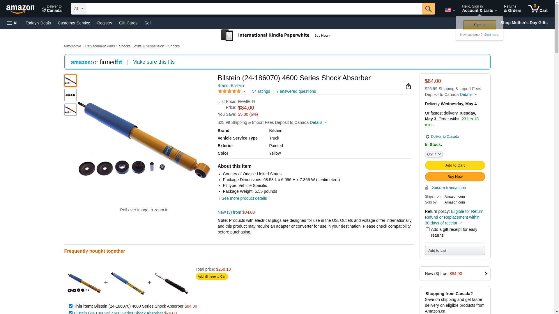 ![]() automotivestuff.com | BILSTEIN-24-186070 | 1 | -2 | 1 | 1 @ $100.00 |