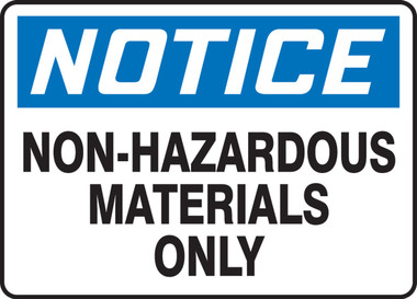 Order MCHL806XP by Accuform OSHA Sign "Notice Non Hazardous Materials Only" - US Mega Store