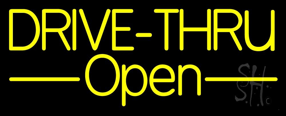 Yellow Drive Thru Open Neon Sign 13" Tall x 32" Wide x 3" Deep