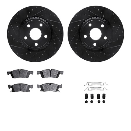 8312-42049, Rotors-Drilled, Slotted-BLK w/ 3000 Series Ceramic Brake Pads incl. Hardware, Zinc Coat