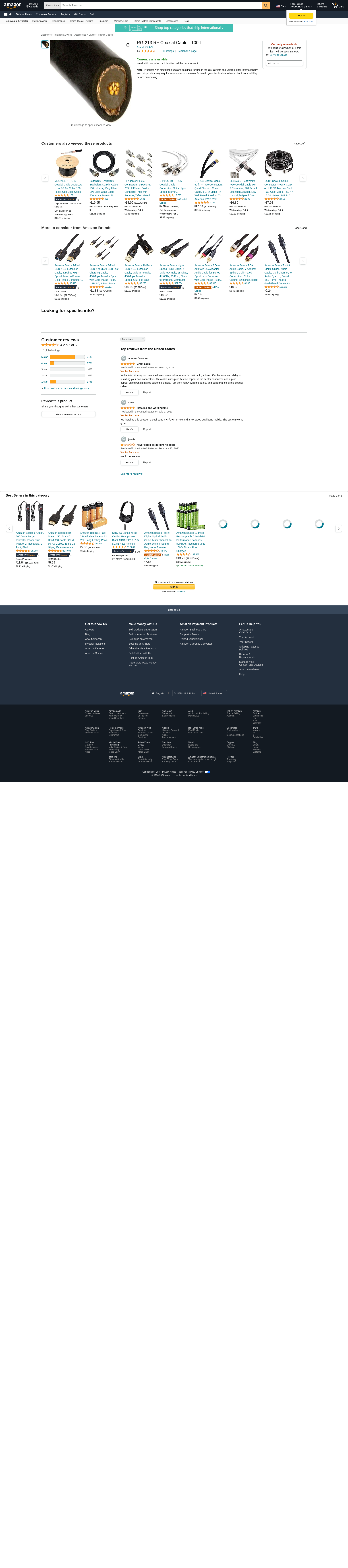 RG-213 RF Coaxial Cable - 100ft