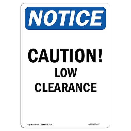 OSHA Notice Sign, Caution Low Clearance, 18in X 12in Aluminum