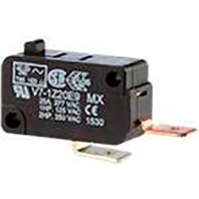V7 Series Miniature Basic Switch, Single Pole Normally Open Circuitry, 25 A at 250 Vac, Pin Plunger Actuator, 2,21 N [7.9 oz] Maximum Operating Force, Silver Contacts, Quick Connect Termination