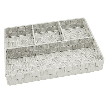 <br /> <b>Simplify 4-Compartment Woven Strap Drawer Organizer:</b> <ul> <li>4 compartments</li> <li>Spot-clean</li> <li>Fits in most standard drawers</li> </ul>