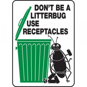 Don'T Be A Litterbug Use Receptacles (W/Graphic) 14" x 10" - MHSK506VS - Jendco Safety Supply