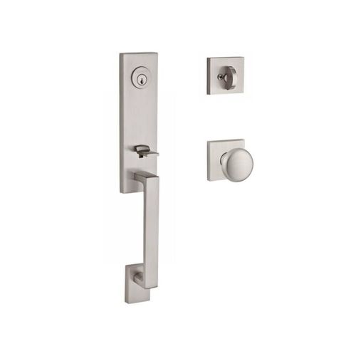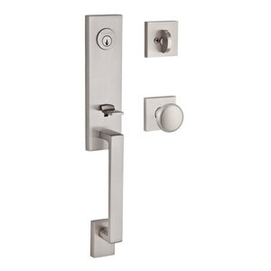 Baldwin Reserve SCSEAXROUCSR150 Baldwin Reserve Single Cylinder Seattle Handleset Round Knob and Contemporary Square Rose with 6AL Latch and Dual Strike Satin Nickel Finish