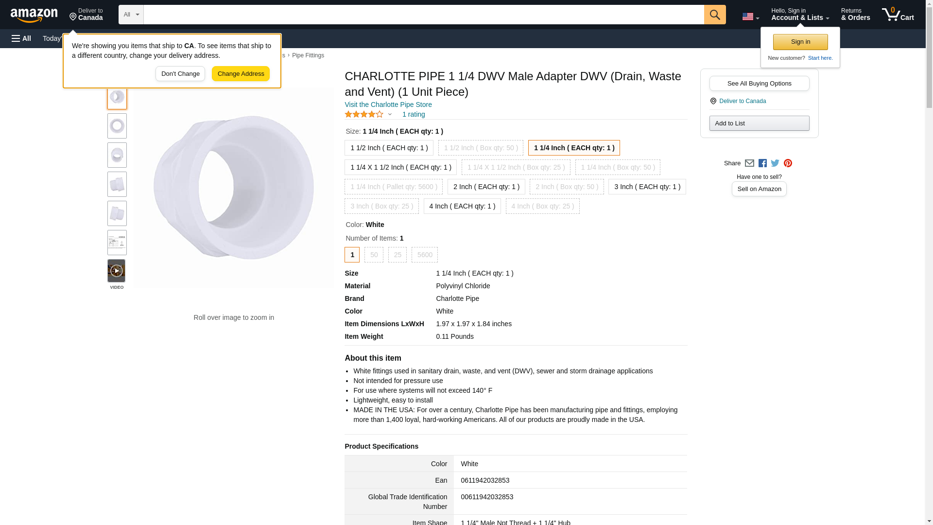 CHARLOTTE PIPE 1 1/4 DWV Male Adapter DWV (Drain, Waste and Vent) (1 Unit Piece)