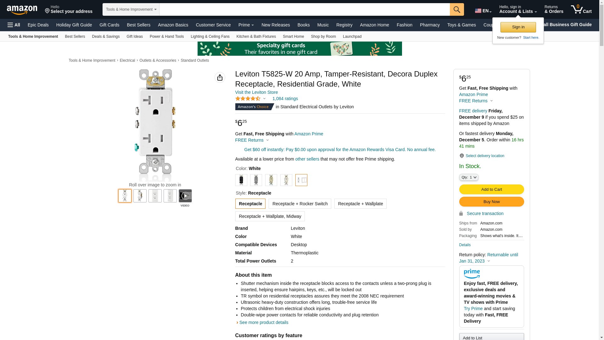 Leviton 131-T5825-00W T5825-W, White: Maxedbuy.com