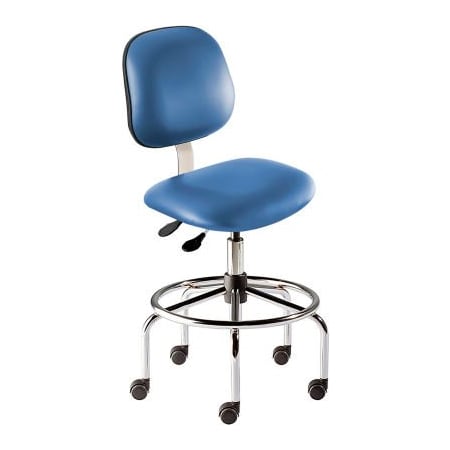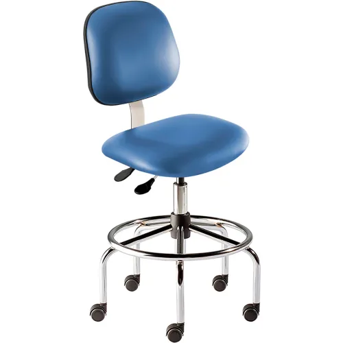 BioFit Antimicrobial Stool, 25"-32" Seat Height, Blue Vinyl - Chrome Steel Base - Belize Series