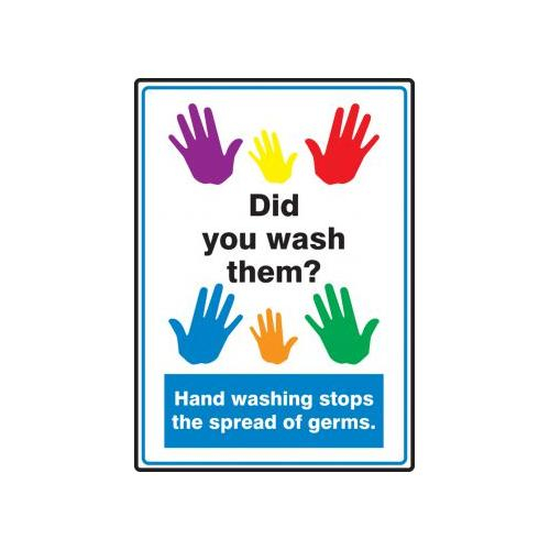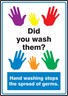 Accuform MRST541XT Legend"DID You WASH Them? Hand Washing Stops The Spread of Germs" Sign, 14" Height, 10" Wide, 14" Length, Dura-Plastic, Red/Black/Blue/Orange/Green/Yellow/Purple on White