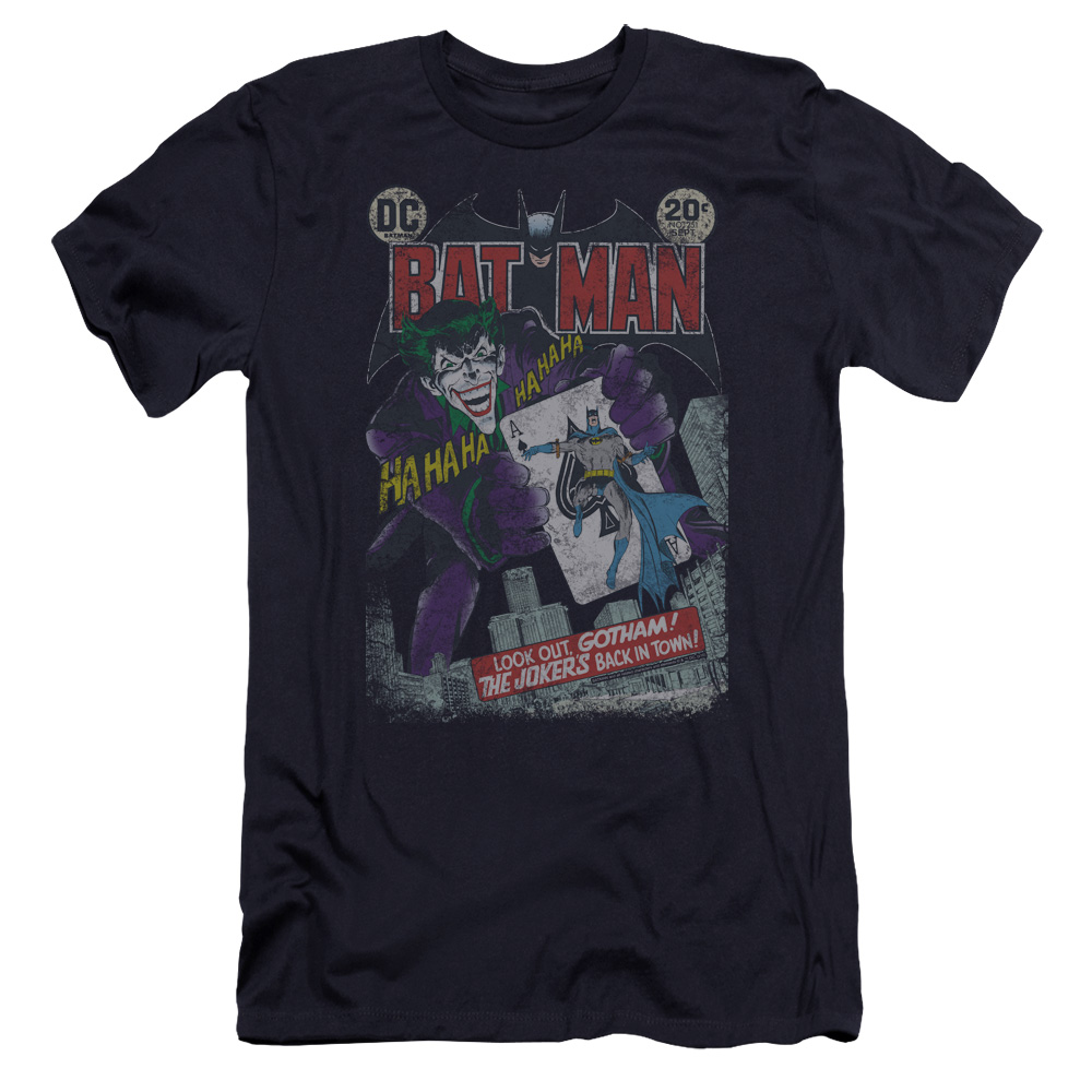 Trevco BM1841-PSF-5 Batman & No.251 Distressed Adult Cotton Premium Canvas Brand Slim Fit 30-1 T-Shirt, Navy - 2X