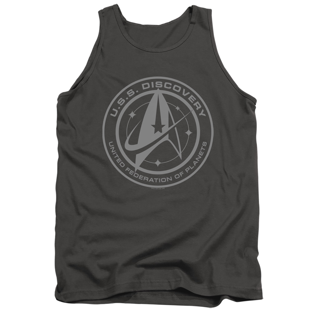 Trevco CBS2564-TK-3 Star Trek Discovery & Discovery Crest-Adult Tank Top, Charcoal - Large