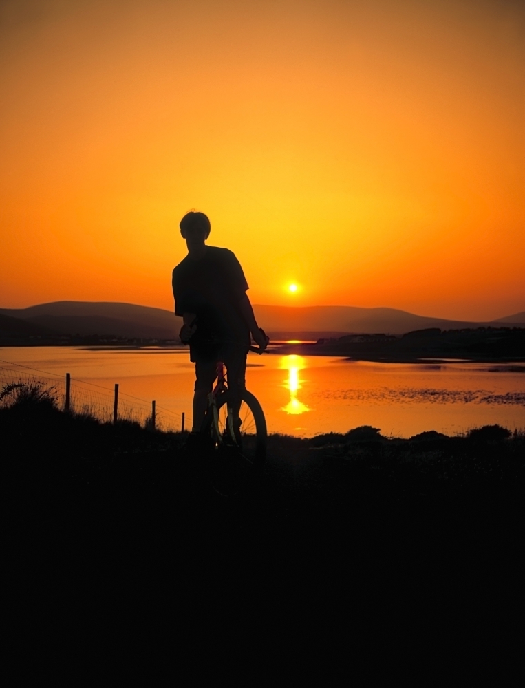 Posterazzi DPI1797894 Achill Island Co Mayo Ireland - Silhouetted Man On A Mountain Bike Poster Print by The Irish Image