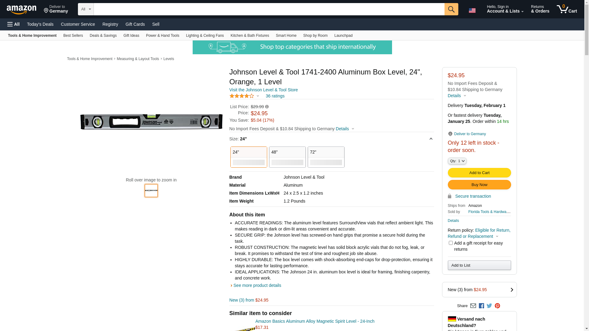 Johnson Level & Tool 1741-2400 Aluminum Box Level, 24"