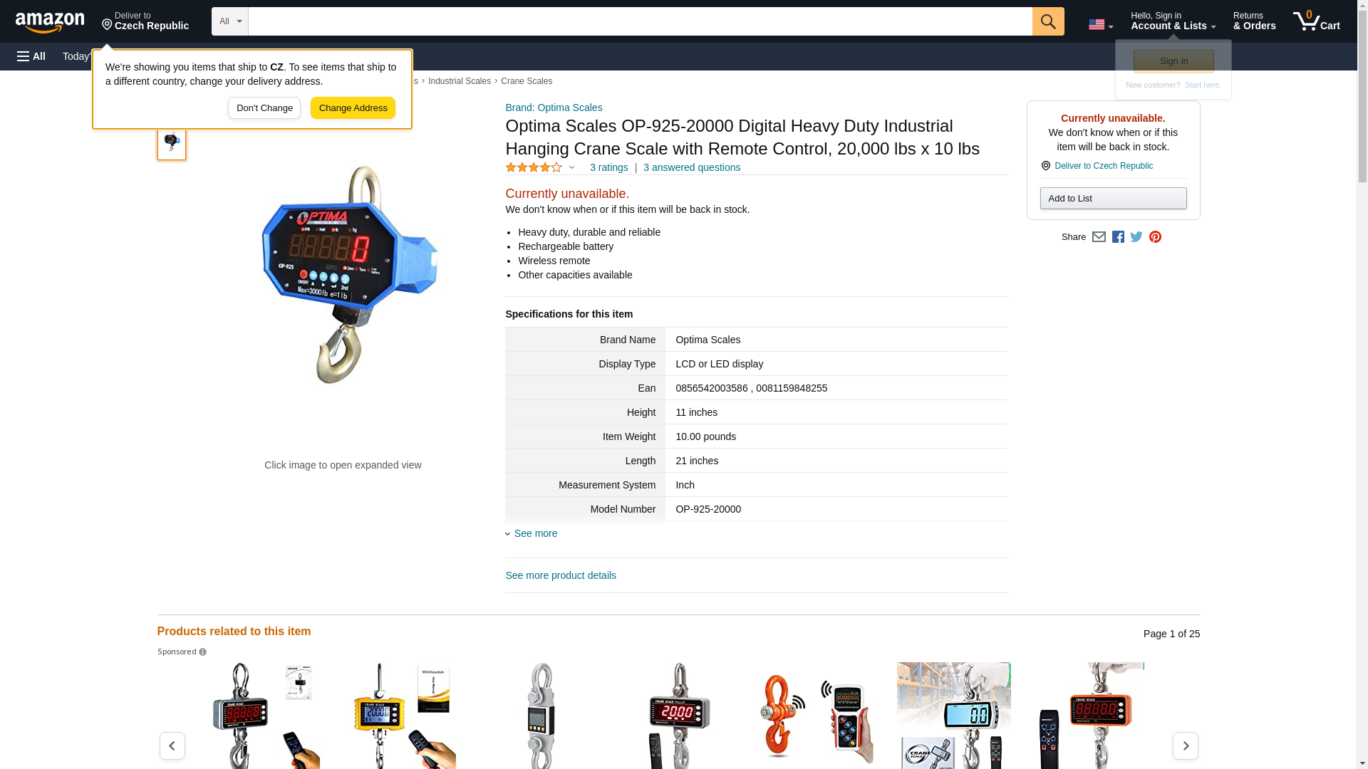 Optima Weighing Systems OP-925-20000 20,000 lb. Heavy-Duty Crane Scale with LCD Display