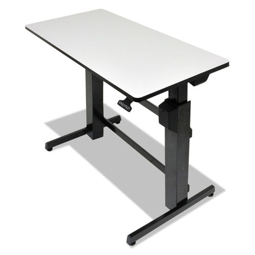 - Easy, stable movement: Easily switch from a sitting to standing position with 20 inches of no-sway mechanical lift; desktop adjusts smoothly from minimum height of 30.6 inches to 50.6 inches; hand-brake lever allows for precise, quick adjustments