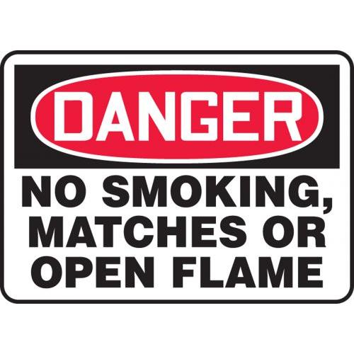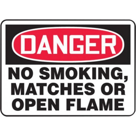 Accuform, MSMK025VP, 10" x 14" OSHA Danger Safety Sign "No Smoking, Matches Or Open Lights" Plastic Features: Manufactured with 50% Post-Consumer Recycled plastic and is recyclable code 2 .055" thick polyethylene, matte surface print Impact resistant with slight flexibility Rounded corners and 3/16" mounting holes on most sizes, will be adjusted for larger sizes Service temperature range: -90 F to 168