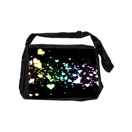 Colorful hearts Large Black School Shoulder Messenger Bag & Pencil Case Set