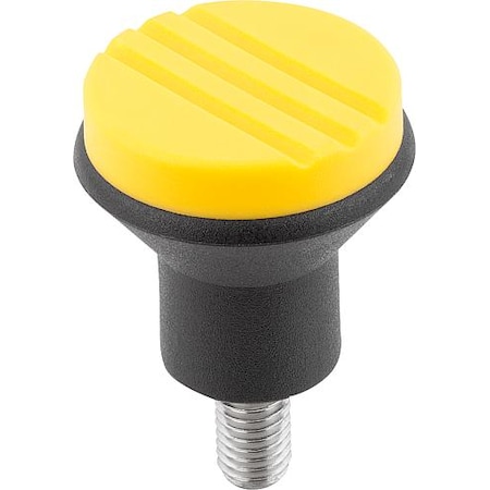 KIPP K0251.0047X10 MUSHROOM KNOB SIZE:1 D=M04X10 D1=21 THERMOPLASTIC BLACK RAL7021 COMP:STAINLESS STEEL CAP:YELLOW RAL1021 - MROSupply.com