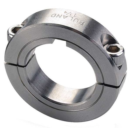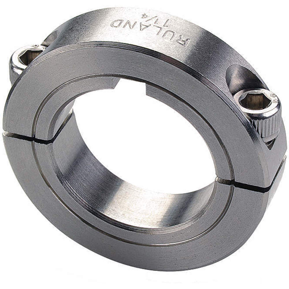 | Feature | Two-piece clamping shaft collar for applications requiring a stronger holding power and higher axial load capacity than setscrew or one-piece clamping collars |