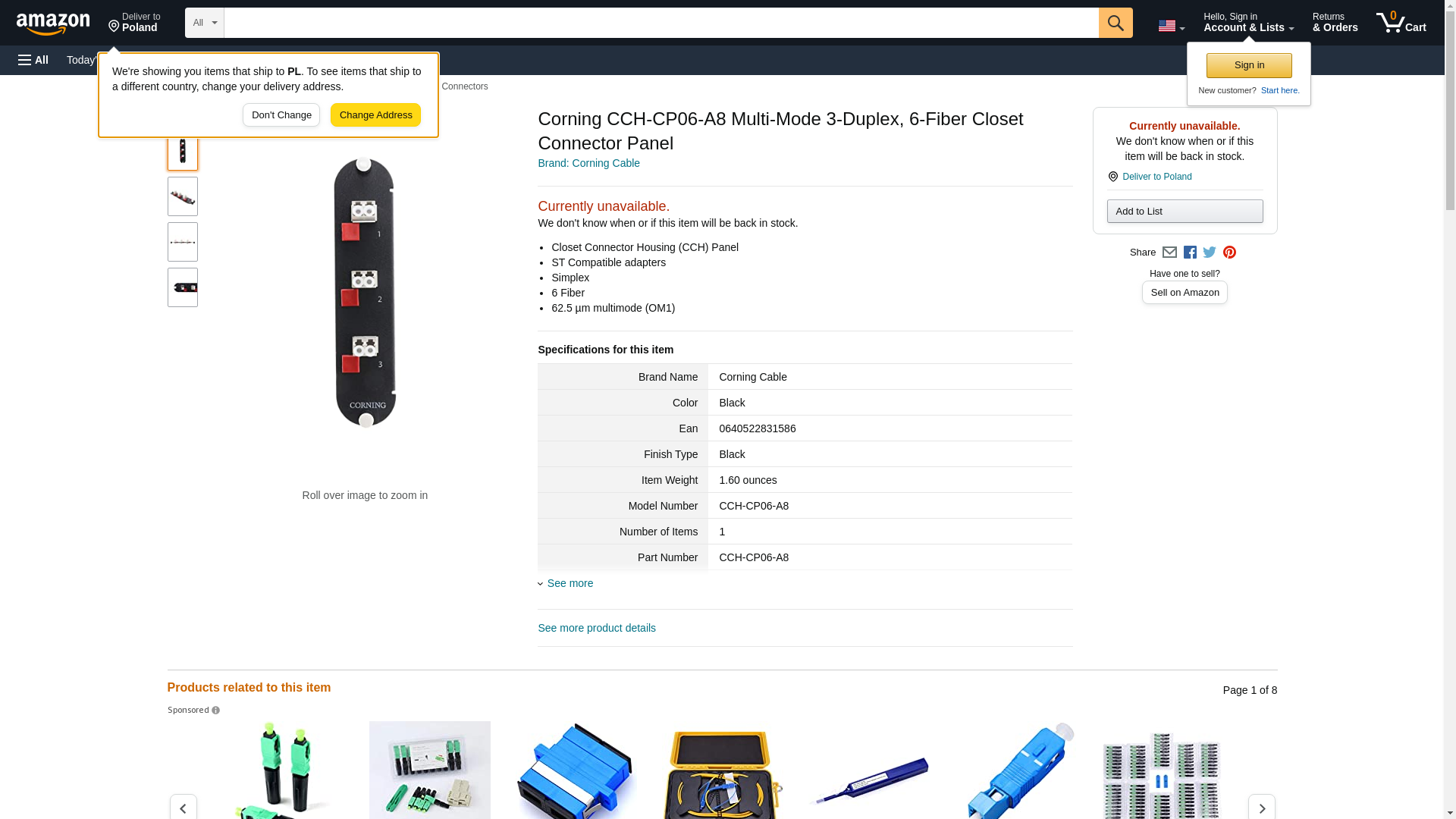 SKU: 60798, Make: Corning, Model: CCH-CP06-A8, Type: LC Duplex 6 fiber 62.5 µm multimode, adapter housing