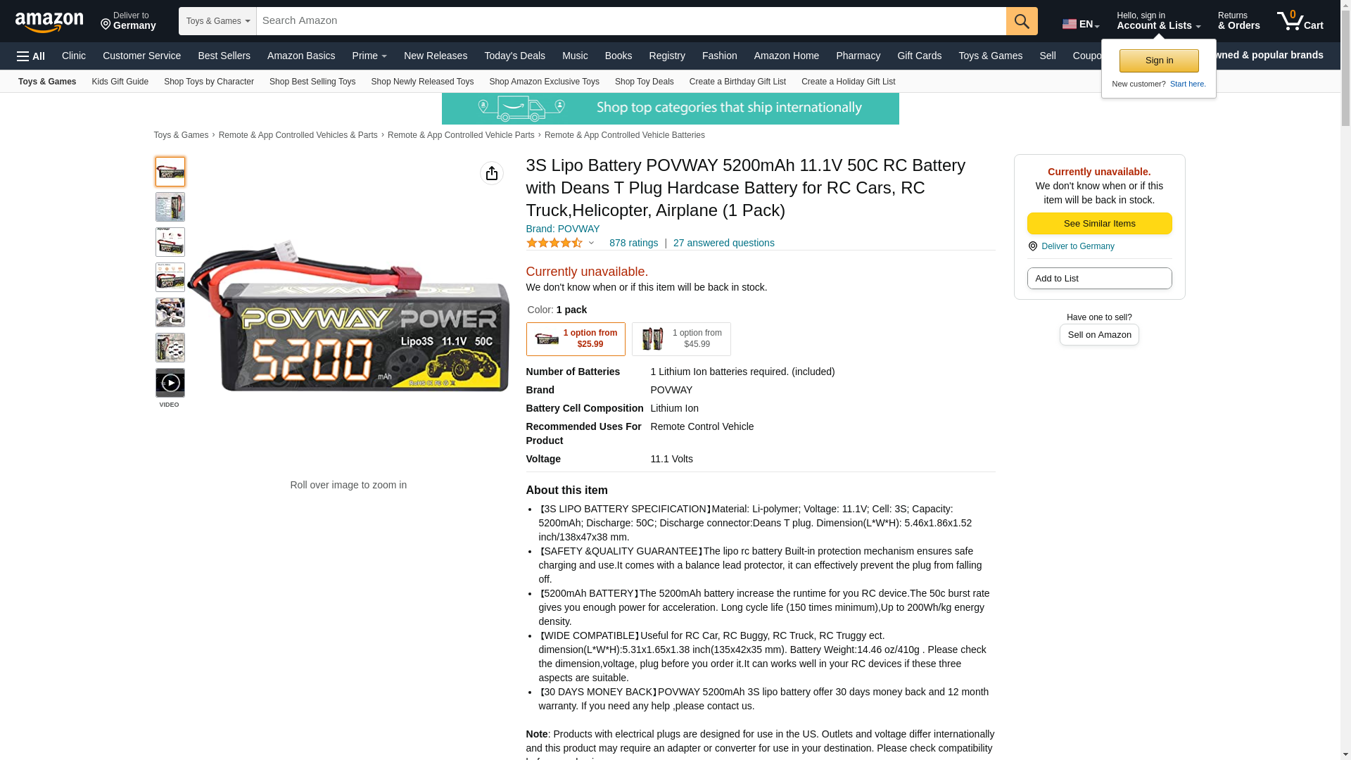 Lipo Battery, POVWAY 5200mAh 3S RC Battery 11.1V 50C with Deans T Plug for RC Cars, RC Truck,Helicopter, Airplane: Maxedbuy.com