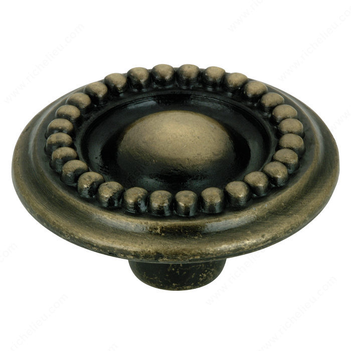 Village Expression IV Collection - 1 1/2" Diameter Bead Embossed Knob in Antique English by Richelieu Hardware - BP37585AE | Knobs 4 Less
