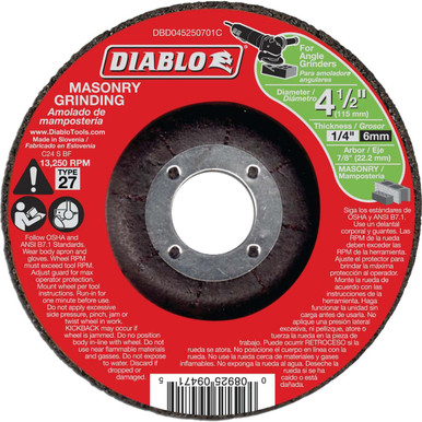 Get the DIABLO DBD045250701C 41/2quot;x7/8quot; ABRASIVE GRINDING DISC MASONRY here with the PlumbersStock.com pros excellent value for your dollar..
