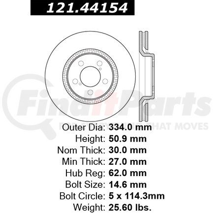 NEW CENTRIC 121.44154 C-Tek Standard Brake Rotor