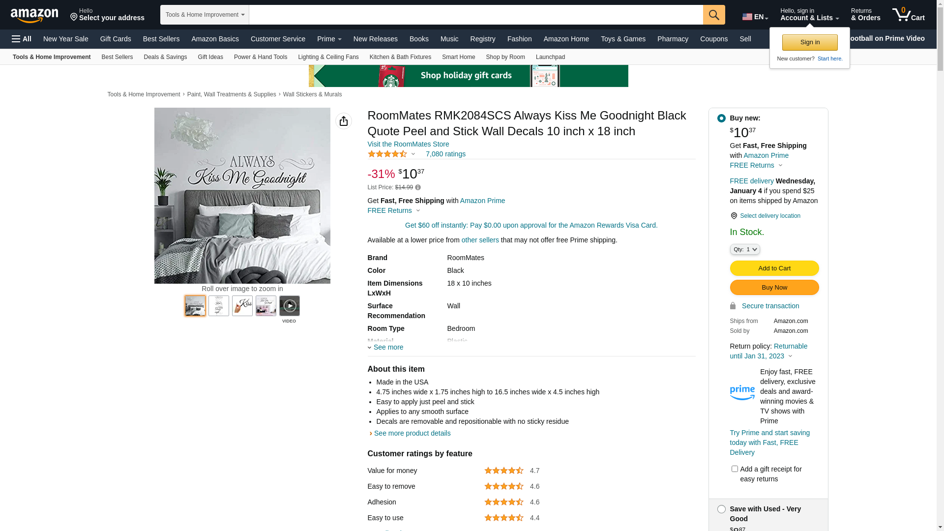 RoomMates RMK2084SCS Always Kiss Me Goodnight Black Quote Peel and Stick Wall Decals 10 inch x 18 inch