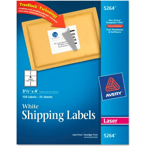 Amazon.com : Avery Printable Shipping Labels with Sure Feed, 3-1/3" x 4", White, 150 Blank Mailing Labels (5264) : Office Products