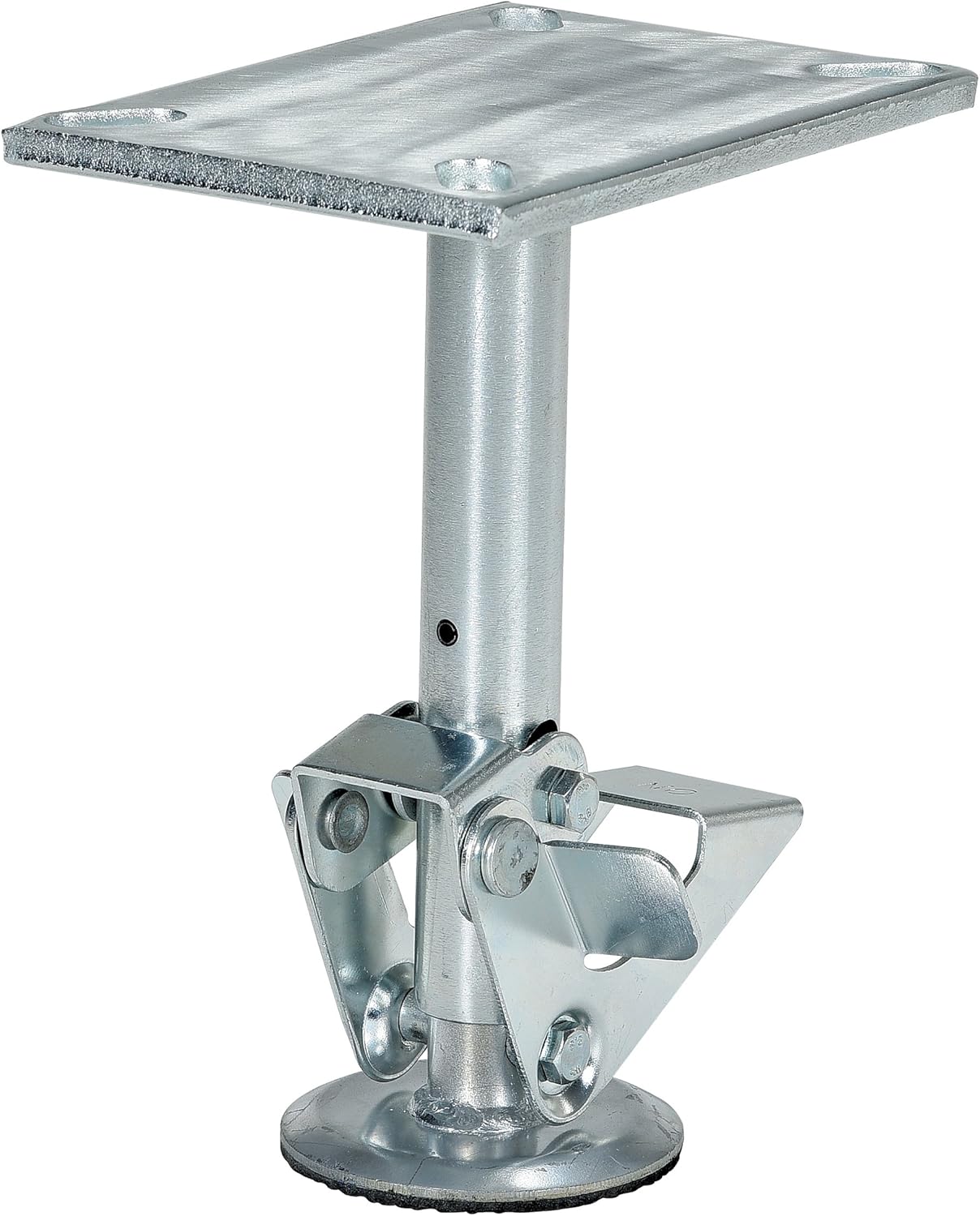 Floor Locks may be used on platform trucks, fixture dollies, or equipment with casters. Simple foot pressure immobilizes equipment. Locks when large friction face is pressed against the floor. To release simply kick release rod. Brake is independent of casters and can be installed to any convenient location on the cart. Vertical mounting plate designed to mount to sides of carts and other portable products. The spring loaded pad accommodates uneven floors. Units mount with pad 1." off the floor when retracted. Limited Warranty: 30 days. Caster Diameter (in.): 8, Mount Height (in.): 10-1/2, Retract Height (in.): 9-1/2, Type: Foot pedal, Mounting Type: Top Plate, Base Plate Width (in.): 5, Base Plate Length (in.): 7-1/2, Base Plate Mounting Holes