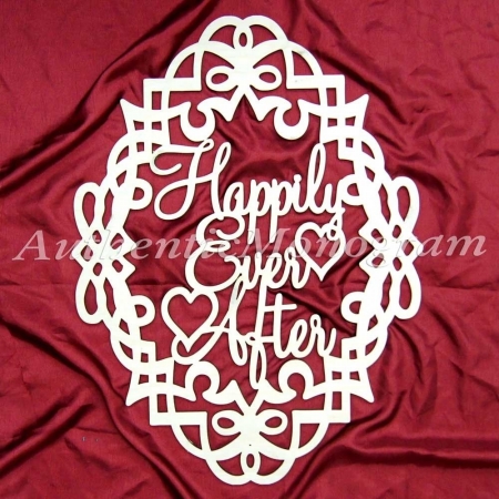 Introducing our gorgeous new wooden monograms and signs We marry technology with hand editing to create the most beautiful balanced and readable piece laser-cut from Baltic plywood the highest quality of Birch wood. They are all lightly sanded and checked carefully to assure customer happiness. We can create and replicate custom designs logos and more. You can mount your monograms and signs on our gorgeous new rustic wooden blocks Created by a local artist from reclaimed distressed wood.Features. Type - Wooden Monogram.. Happily Ever After Filigree Frame.. Painted.. Size - 18 in.