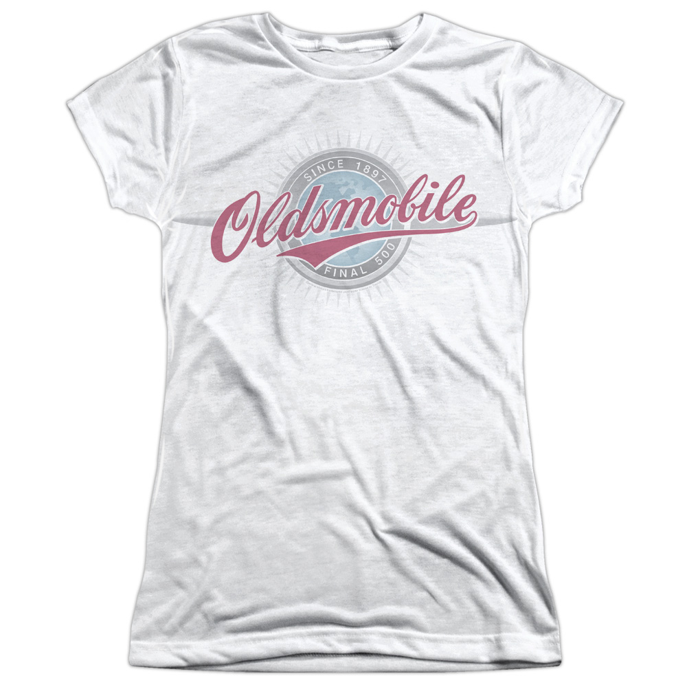 Trevco OLS102-JSPP-1 Oldsmobile-Oversized & Faded Logo Junior Polyster Crew Neck Cap Short Sleeve T-Shirt, White - S