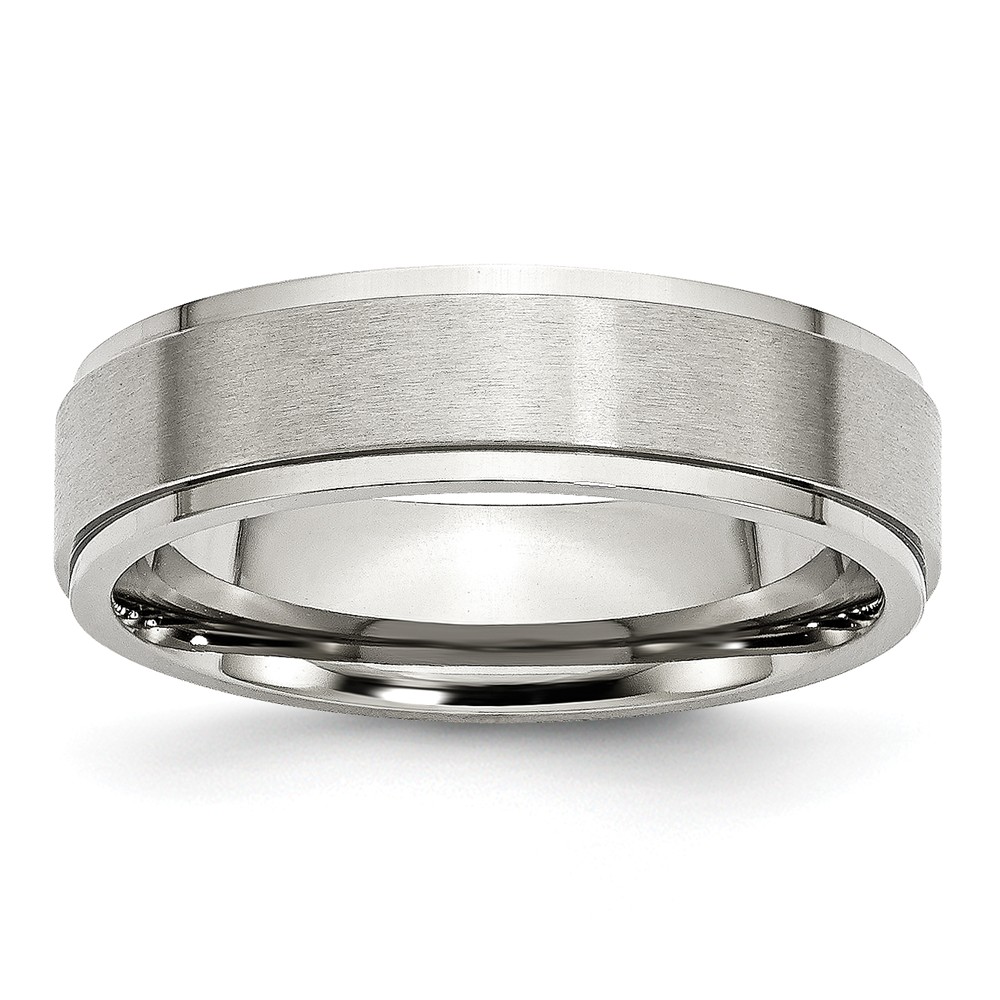 Bridal SR32-11.5 6 mm Stainless Steel Ridged Edge Brushed & Polished Band - Size 11.5