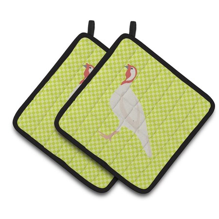 Caroline's Treasures BB7815PTHD Beltsville Small White Turkey Hen Green Pair of Pot Holders , 7.5HX7.5W, Multicolor
