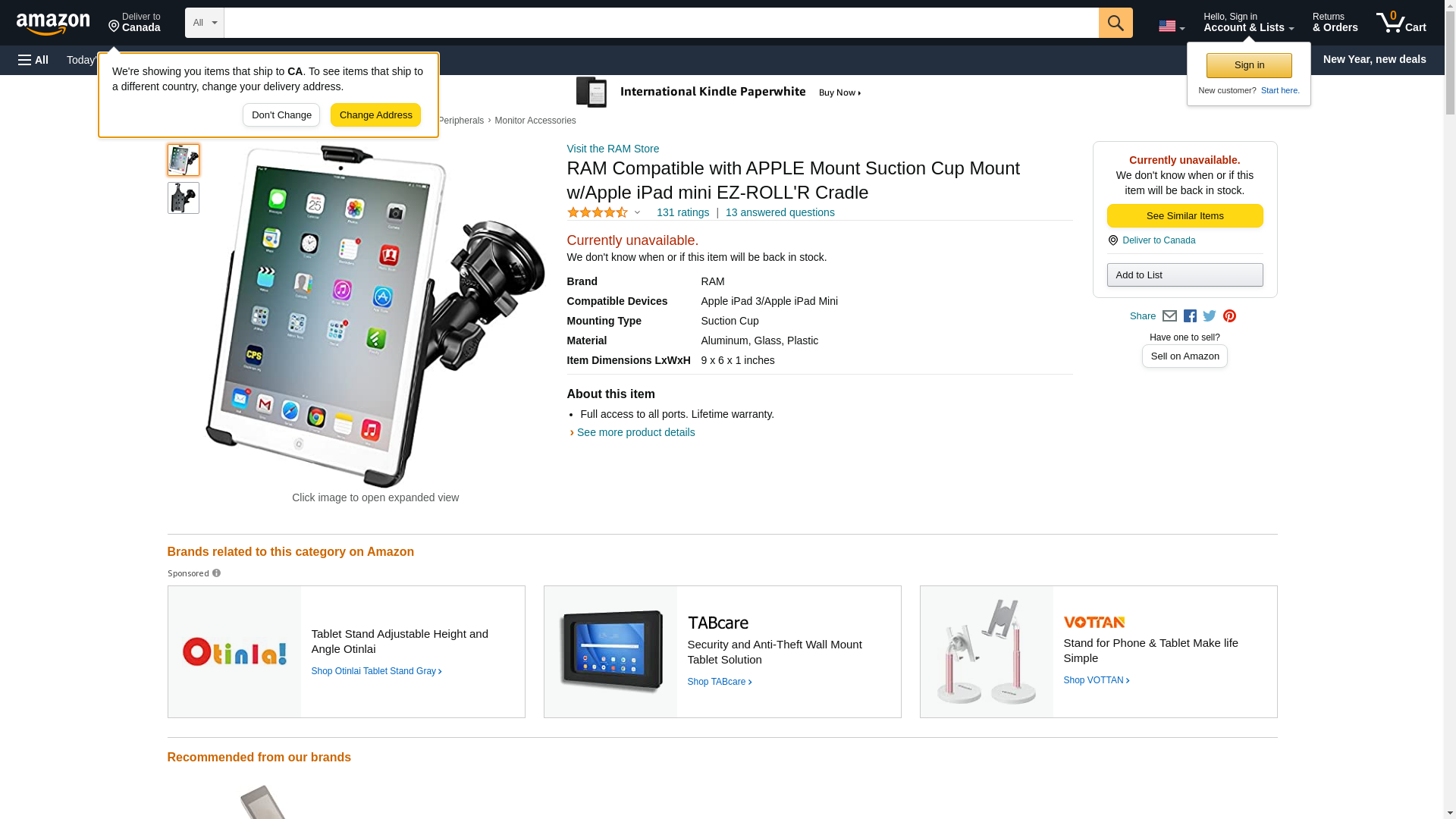 RAM Suction Cup Mount w/iPad mini EZ-ROLL'R CradleThe EZ-ROLL'R consists of a high strength composite cradle and patent pending roller design. The patent pending roller design allows for smooth placement and removal of the iPad, while keeping it secure while on the go. Compatible and interchangeable with a wide range of popular RAM Mounting products, this cradle is ready to compliment your iPad and become the most useful accessory in your vehicle.The EZ-ROLL'R cradle is compatible with the following tablets: Apple iPad mini WITHOUT CASE, SKIN OR SLEEVESpecifications:Docking Cradle: NoLocking Cradle: NoFits Tablets WITH Cases: NoFits Tablets WITHOUT Cases: YesLow Vibration Environment: YesHigh Vibration Environment: Yes Cradle Features:1. Compatible with various iPad cable/docking accessories2. Patent pending roller design for super smooth placement and removal of the iPad3. High strength materials maximize longevity of cradle4. Full access to all ports 5. Lifetime warranty Material:High Strength CompositeSuction Cup Mount Features:Double socket arm, 3.25" suction cup twist lock base and round base adapter that contains the universal AMPs hole pattern. The mount is designed with a RAM 1" diameter patented rubber ball and socket system that has adjustment points at both ends of the double socket arm; this allowing for almost infinite adjustment and perfect viewing angles. The hole pattern found on the round base adapter will connect to many RAM cradles. The suction cup base is designed to have a strong hold on glass and non-porous plastic surfaces, including RAM adhesive disks.