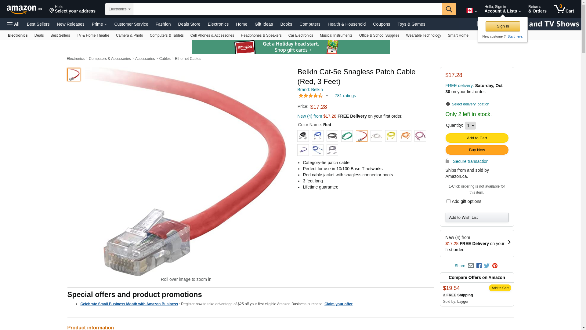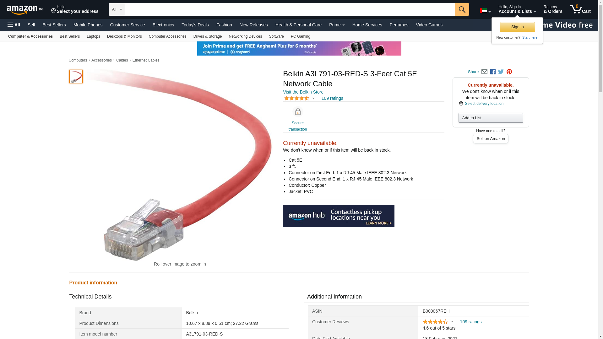 | Feature | BELKIN cat5e 3ft red patch cord w/snagless boot A3L791-03-RED-S |