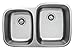 - Double bowls 7 and 9 inches deep configured in 40-60 ratio, with large bowl on the right