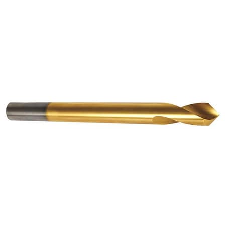 Precision Twist SPRG 90 High Speed Steel Spotting Drill Bit, TiN Coated, Round Shank, Spiral Flute, 90 Degree Point Angle, 1/4"
