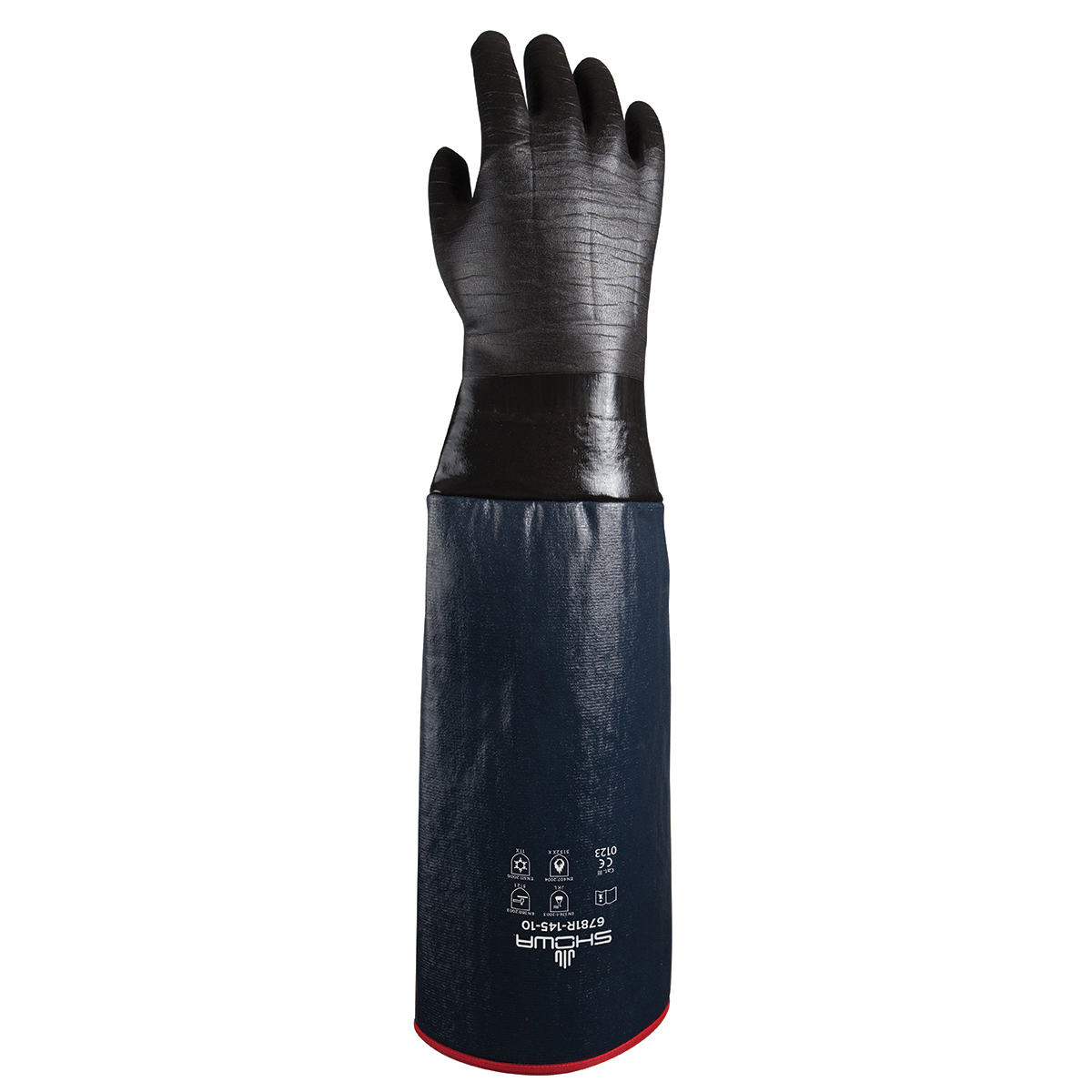 SHOWA 6781R-06 Full Arm 26" Nitrile and Neoprene Insulated Chemical Resistant Work Glove, Large, Black