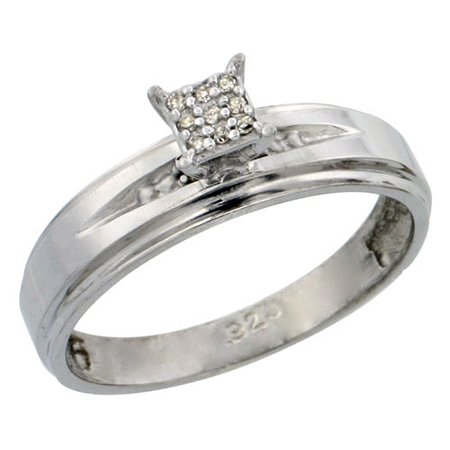 Sterling Silver Diamond Engagement Ring Rhodium finish, 3/16 inch wide