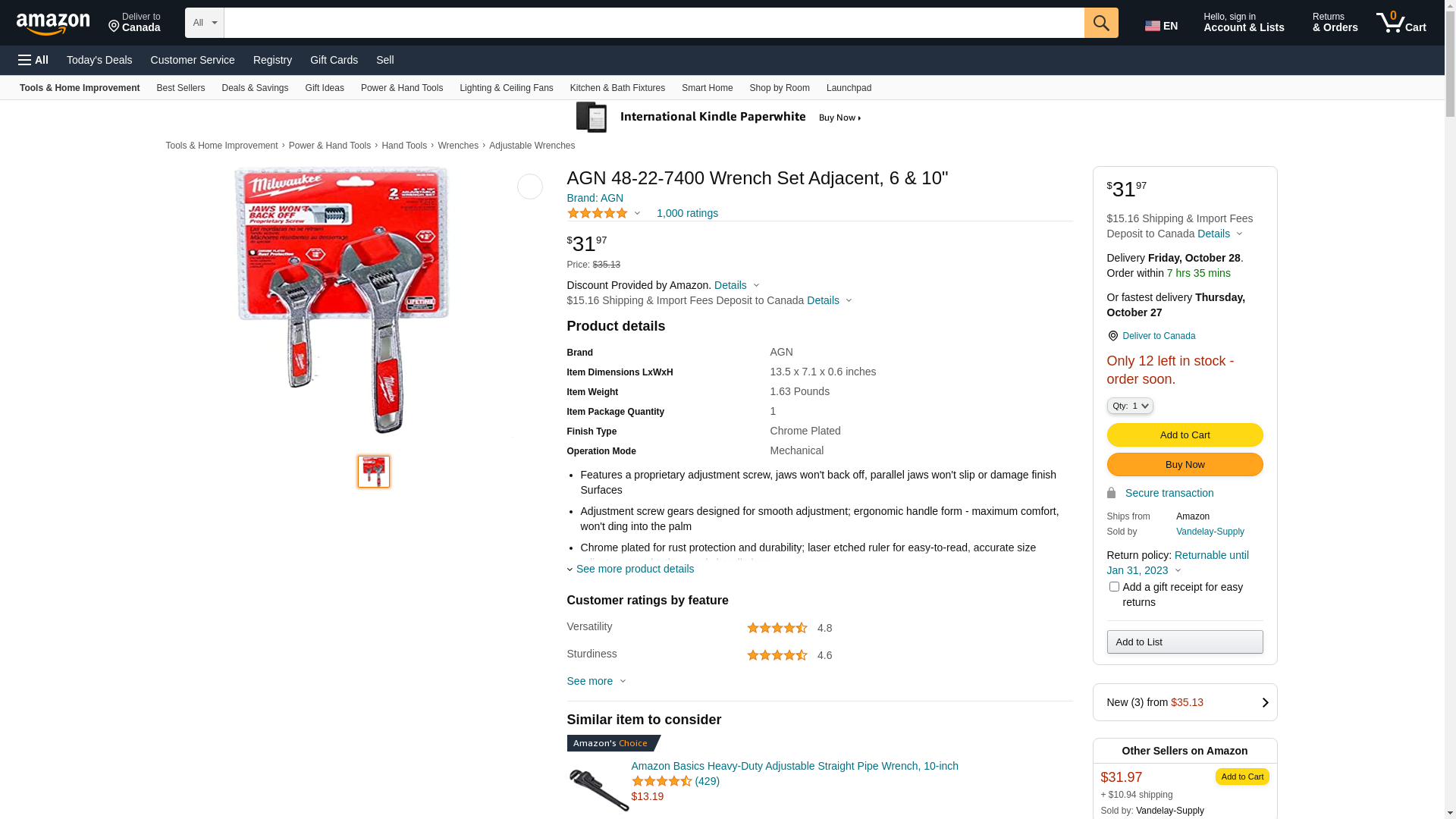 | Feature | Includes: (1) 48-22-7406 6in. Adjustable Wrench and (1) 48-22-7410 10in. Adjustable Wrench. |
