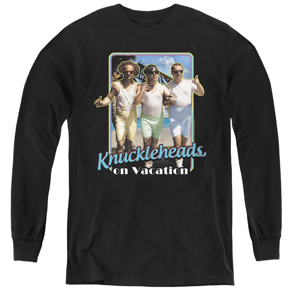Trevco TTS136-YL-2 Three Stooges & Knucklesheads on Vacation Youth Long Sleeve T-Shirt, Black - Medium