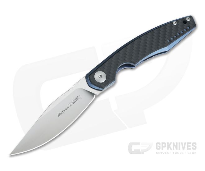 Viper Belone Satin M390 Clip Point Carbon Fiber Overlay Blue Titanium Liner Lock Flipper Knife For Sale