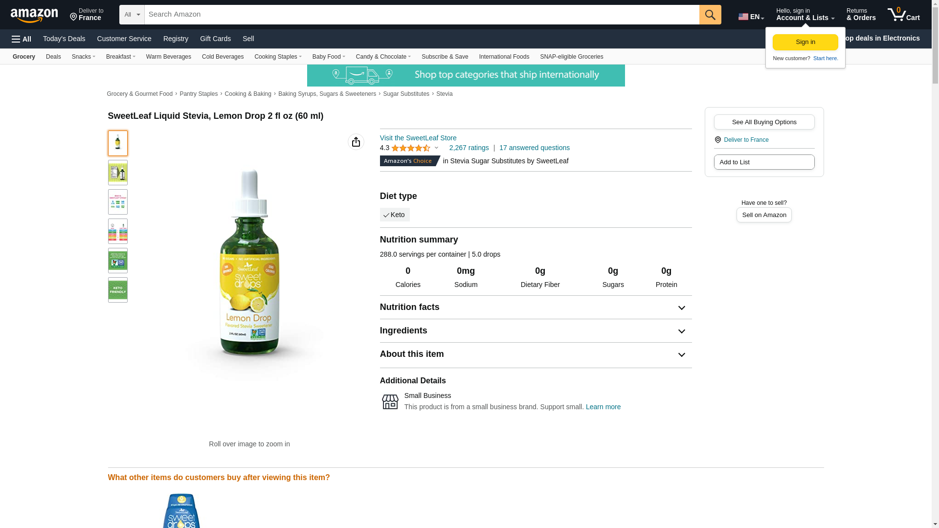 | Feature | Sweet Leaf Sweet Drops Sweetener Lemon Drop - 2 fl oz |