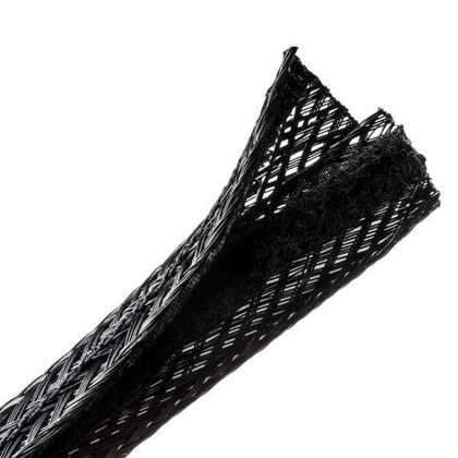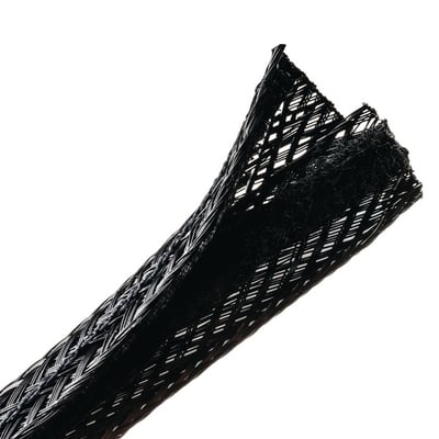 Hellermanntyton Braided Sleeving, Hook & Loop, Flame Retardant, 0.75" Dia, Pet, Black, 100 Ft/bulk Reel - 170-03154
