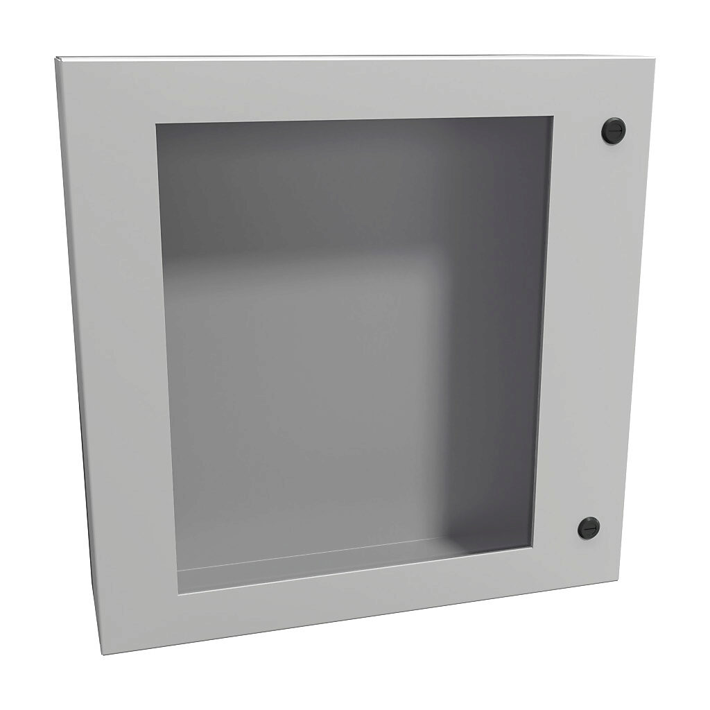 Hammond Type-4 wallmount enclosure is made of 14-gauge steel with ANSI 61 light gray recoatable powder finish on inside and out to provide durability. It is ideally designed for electrical and/or electronic equipment. It measures 24 Inch x 6 Inch x 24 Inch. Enclosure comes with full view UV resistant polycarbonate window to offer maximum viewing area of inner panel. It has smooth continuously welded seams to offer abrasion resistance. Enclosure has formed lip to eject flowing liquids and contam