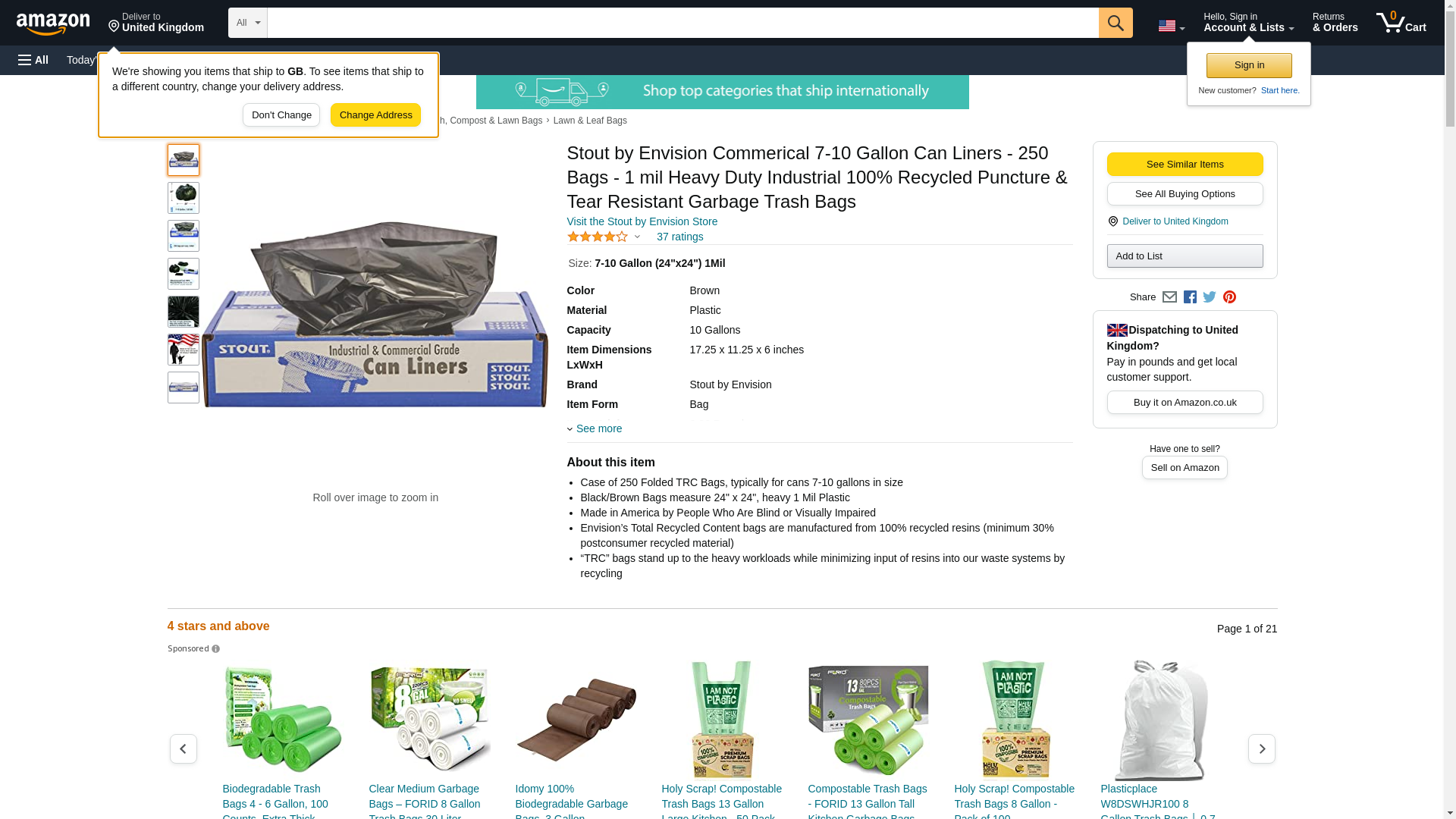 Stout T2424B10 100% Recycled Plastic Garbage Bags 7-10gal 1mil 24 x 24 Brown/Black 250/CT