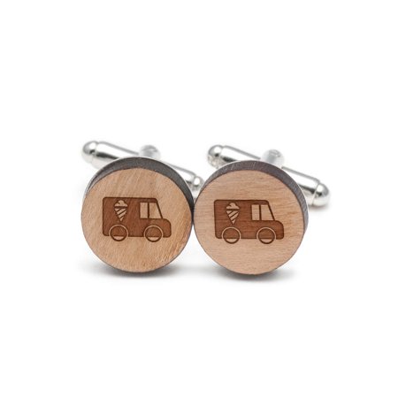 <ul> <li>Modern Wood Cufflinks Hand Made in the USA</li> <li>Materials: Made from premium cherry wood.</li> <li>Dimensions: Cufflink circle is 14mm x 14mm. 3mm thickness</li> <li>Laser Cut & Etched in USA</li> </ul>